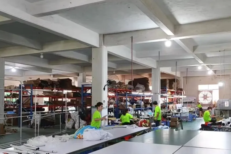 Työpaja 10, 800 neliömetriä, 130+ työntekijää, 20+ suunnittelijatiimi, 5 000 000 dollarin käyttöomaisuuskone, 50+ sarjaa metallinkäsittelykonetta, 100+ sarjaa kangas- ja painokonetta, 1000 000+ sarjaa, asiakaskaksois9 vuositilausmäärä0 %.